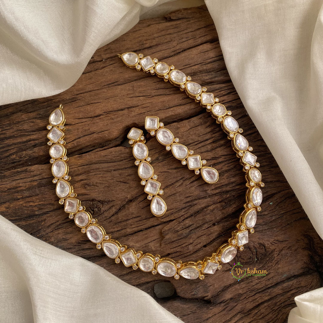 Elegant Mossanite Victorian Diamond Short Neckpiece - The short length and exquisite pendant make it a versatile accessory, perfect for adding a touch of glamour to any ensemble. Whether worn alone as a statement piece or layered with other necklaces for a more personalized look, this neckpiece exudes luxury and charm, making it a must-have addition to any jewelry collection; comes with pair of matching earring