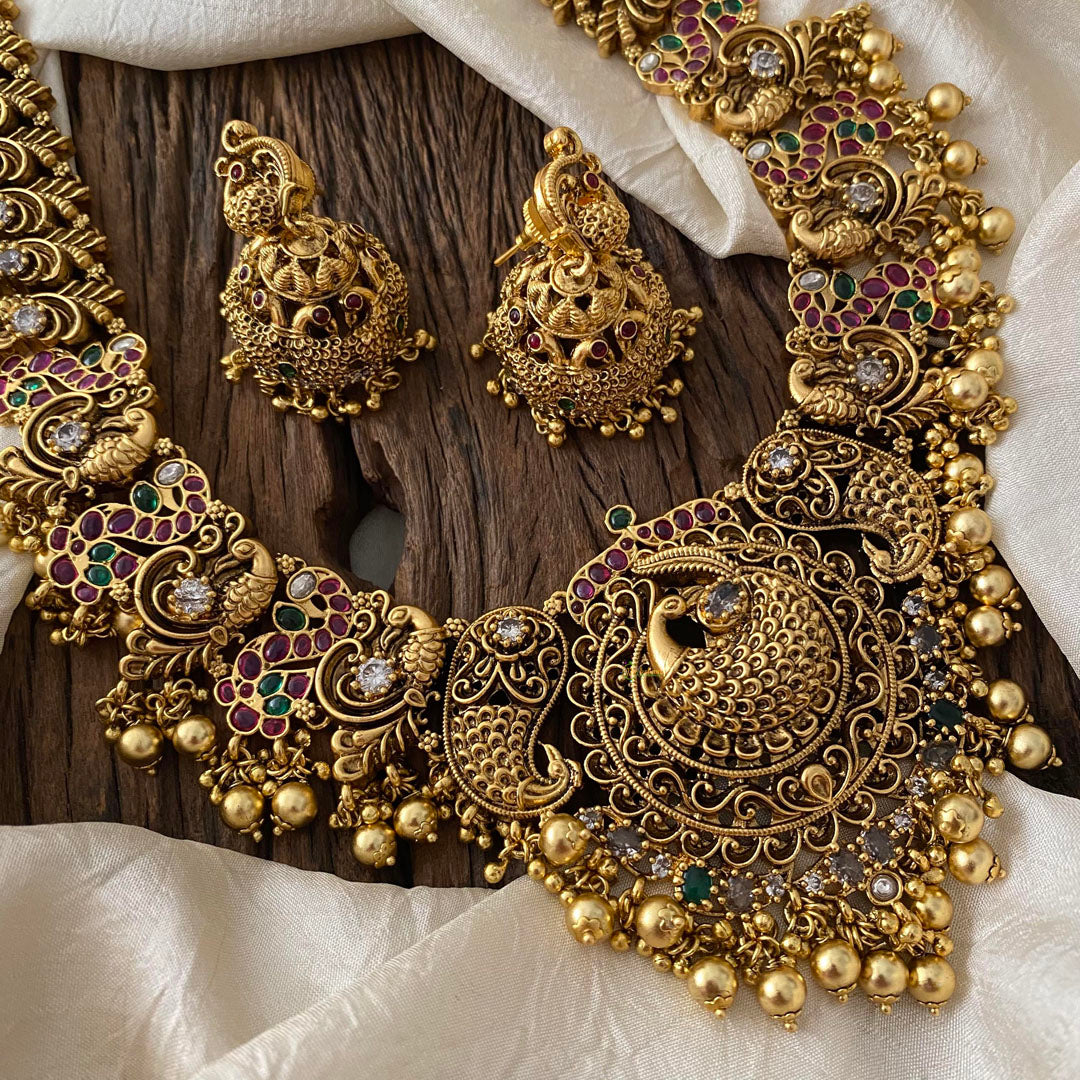 For more such pieces visit, https://vrikshamindia.com/product-category/golden-jewellery/long-neckpieces/