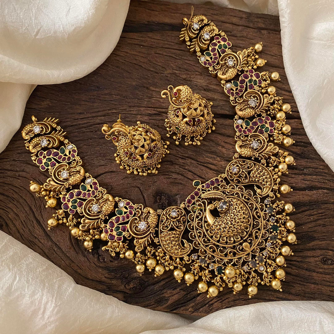 For more such pieces visit, https://vrikshamindia.com/product-category/golden-jewellery/long-neckpieces/
