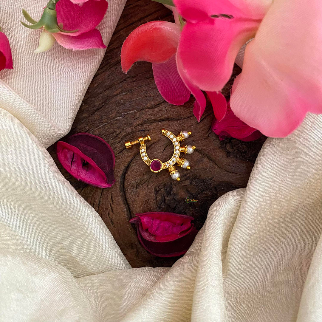 Elegant Red White AD Stone Nath / Nose pin-Pearl-G13979