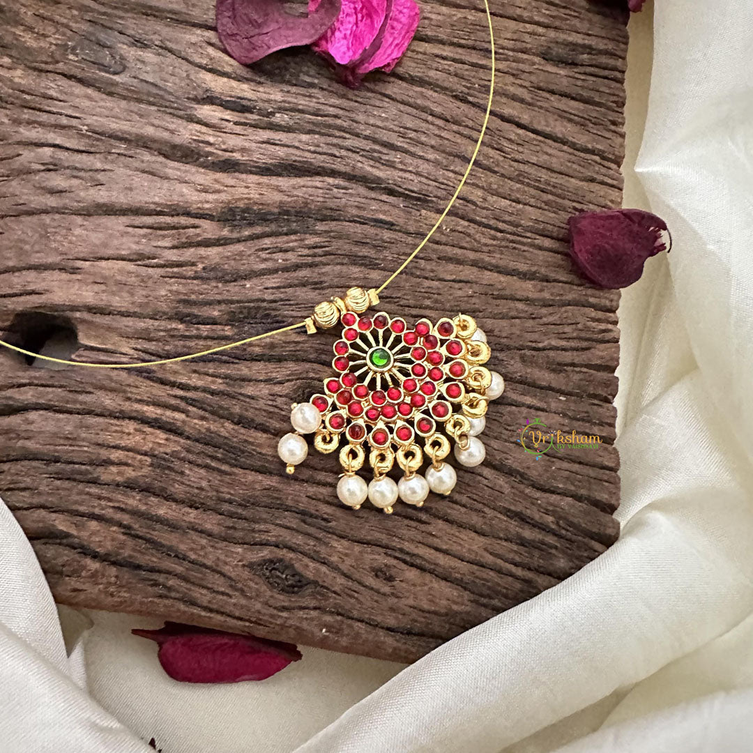 Indulge in timeless elegance with our Elegant Single Red Kemp Stone Pendant. The invisible neckpiece, adorned with a stunning red Kemp stone and delicate pearl, adds a touch of sophistication to any outfit. Elevate your look with this exclusive and luxurious piece.