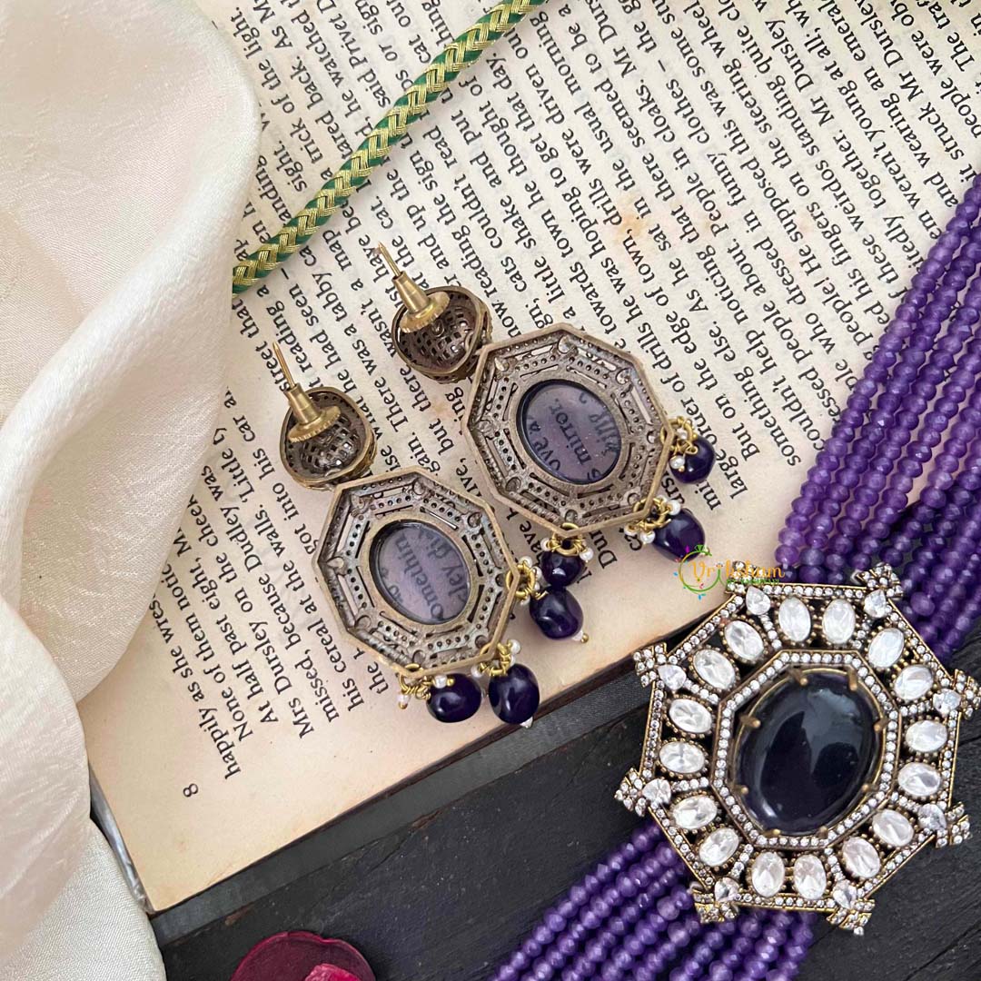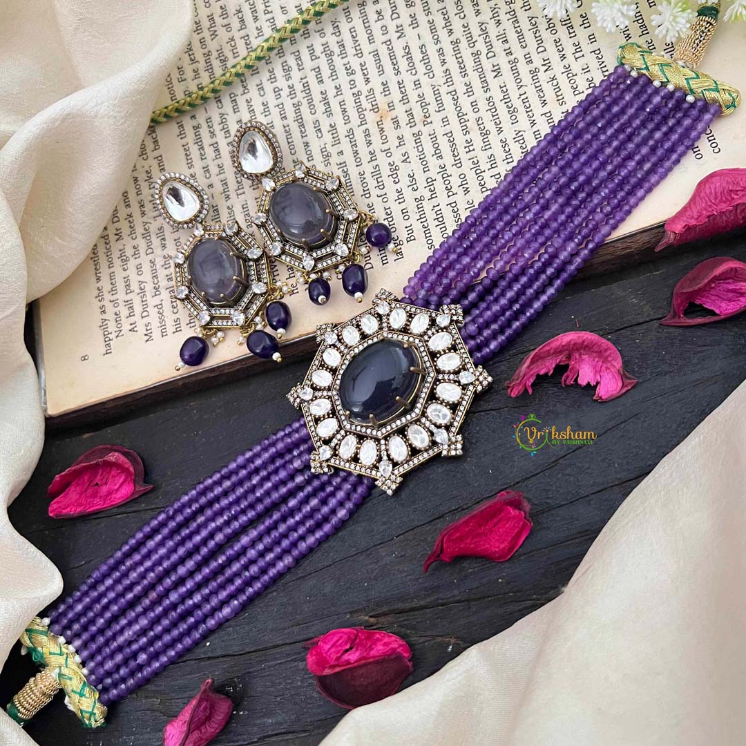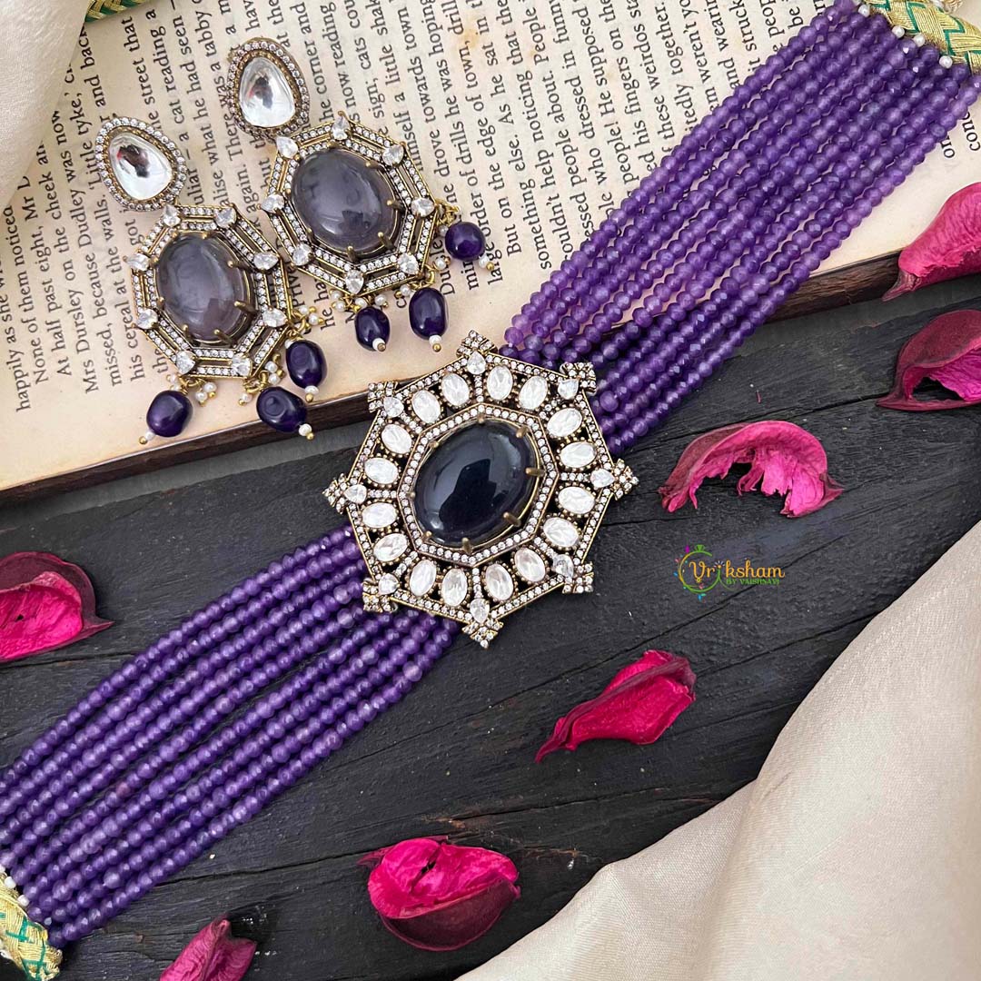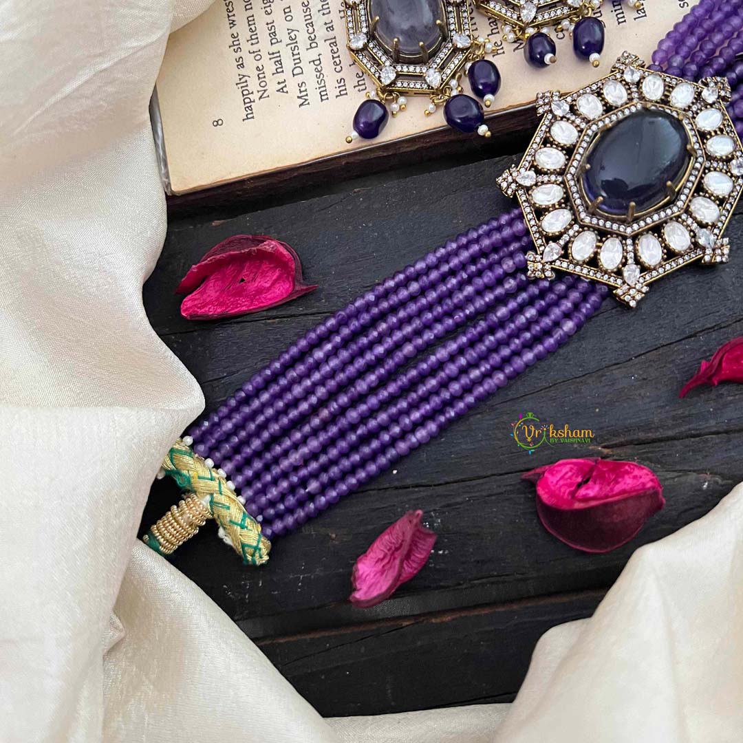 Elevate your style to a new level of elegance with our Victorian Diamond Layered High Neck Choker in Purple. Adorned with stunning diamond beads and a focal center stone, this choker is a luxurious statement piece that will bring a touch of sophistication to any outfit.