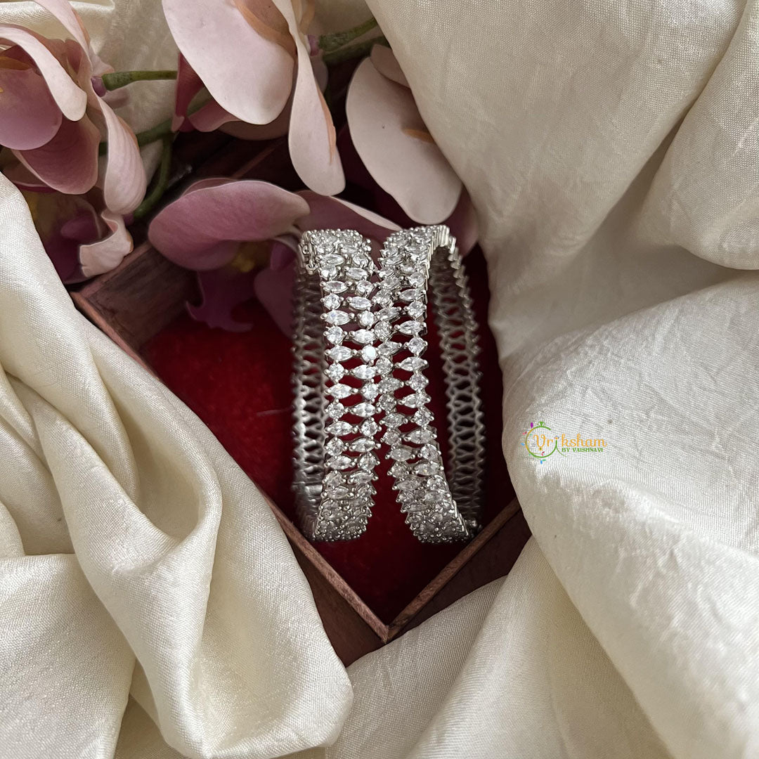 Elegant White Tone AD Stone Bangle Set - AD Stone studded festive bangles , Comes as pair only.
