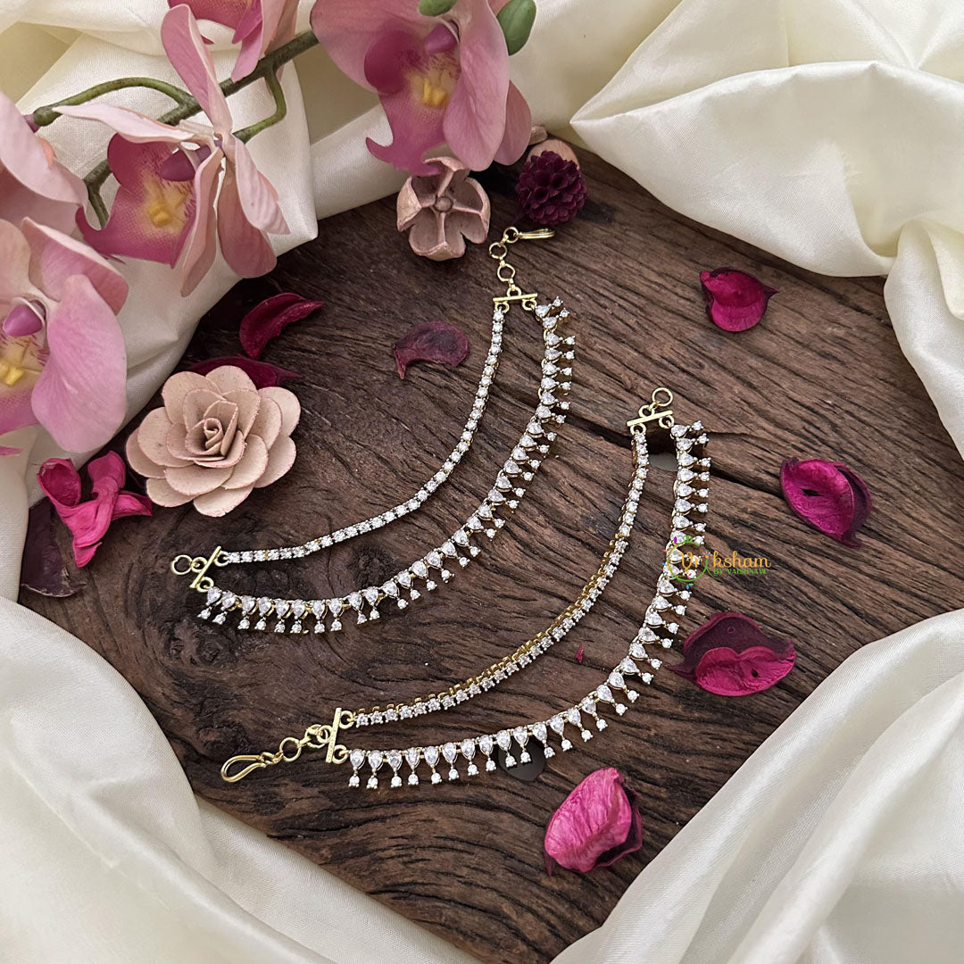 Indulge in luxury with our Exclusive AD Stone 2 Layered Maatil- Earchain. The sparkling AD stones add a touch of elegance to this statement piece, while the layered design exudes sophistication. Elevate your style and make heads turn with this exclusive necklace.