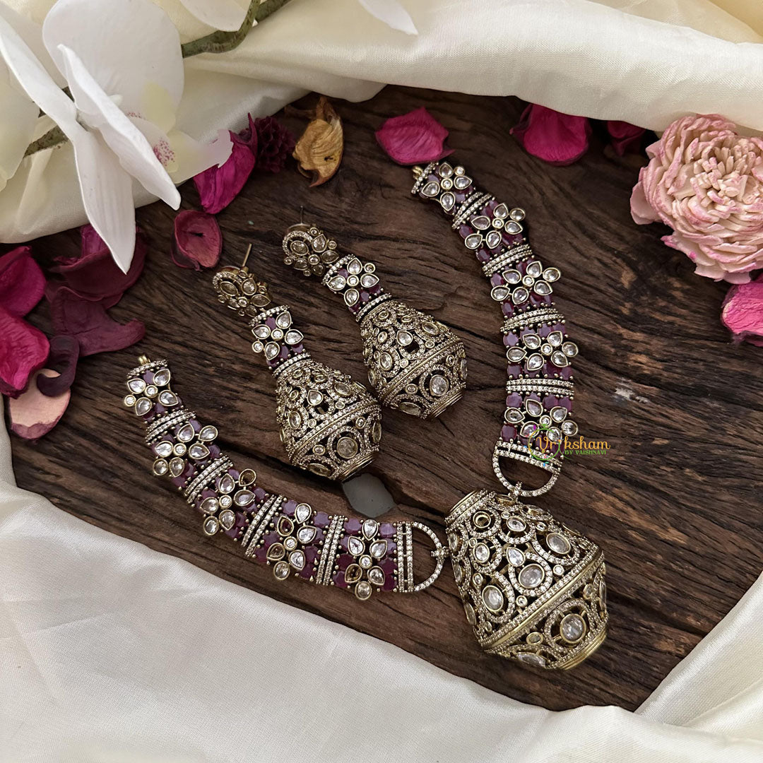 Indulge in opulent luxury with our Exclusive Red Victorian Diamond Hasli. A true statement piece, this diamond-studded necklace exudes elegance and sophistication. The unique red diamond adds a touch of rarity and exclusivity, perfect for the tasteful and refined individual. Own a piece of art with our Hasli.