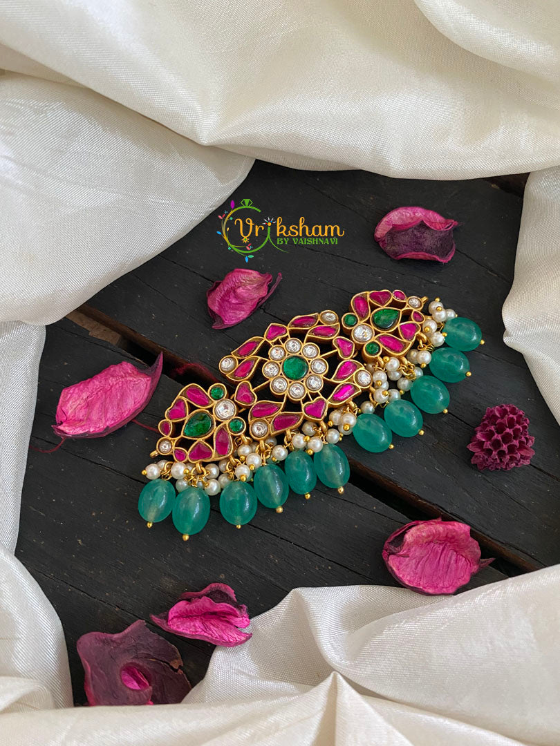 Exquisite Jadau Kundan High Neck Choker with kundan & precious stone studded premium quality pearl finish neckpiece.