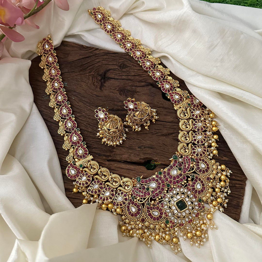 Elevate your style with our Exquisite Precious AD Stone Neckpiece! The perfect blend of gold and pearl adds a touch of sophistication to any outfit. Make a statement with our short neckpiece and stand out from the crowd. Upgrade your jewelry collection now. Comes with matching earrings.