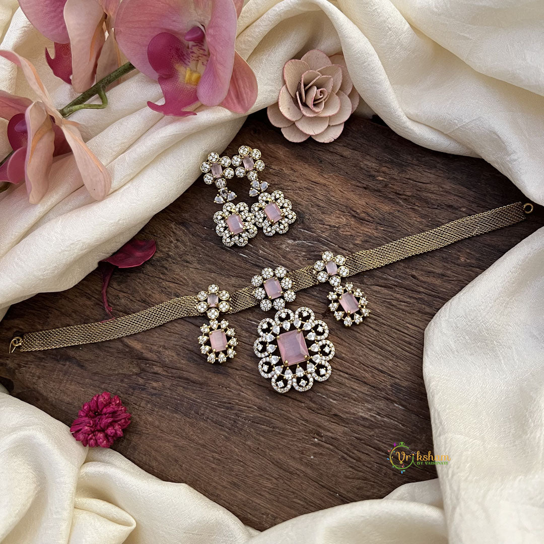 Indulge in the ultimate luxury with our Exquisite Victorian Diamond Hasli Neckpiece. Adorned with beautifully cut diamonds, this Baby Pink neckpiece exudes elegance and sophistication.