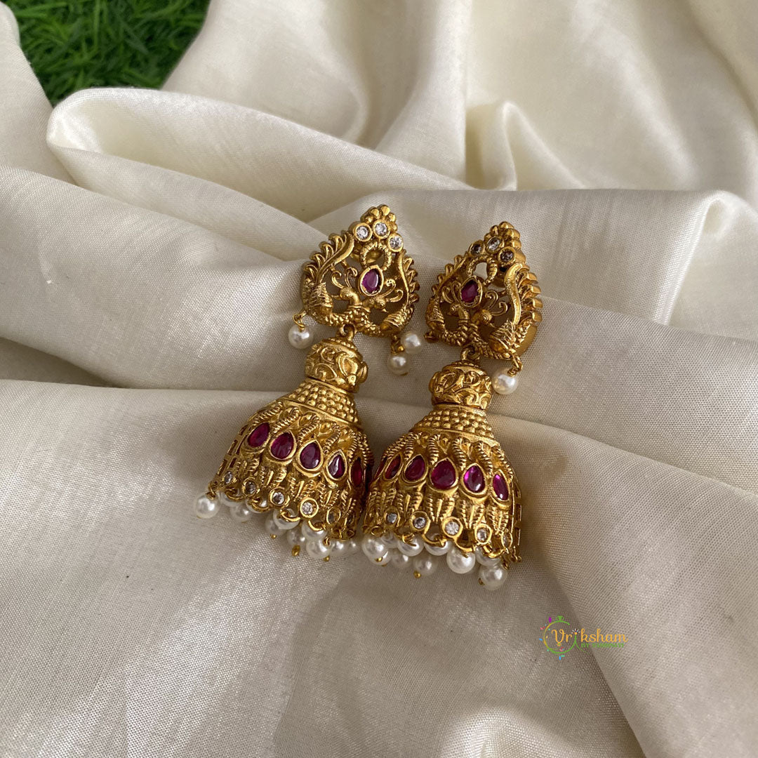 Fancy Gold Look Alike Dual Peacock Jhumkas -Designer wear earrings; comes as a pair.