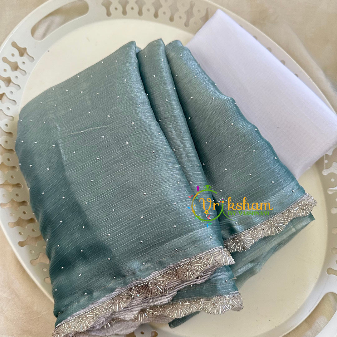 Sage Blue Fancy Organza Saree-Jhanvi Kapoor Saree-VS3512