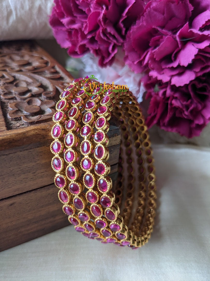 Festive Kemp Bangles – Red stone Gold look alike patterned kemp bangles with round pattern design, comes together as four bangles only.