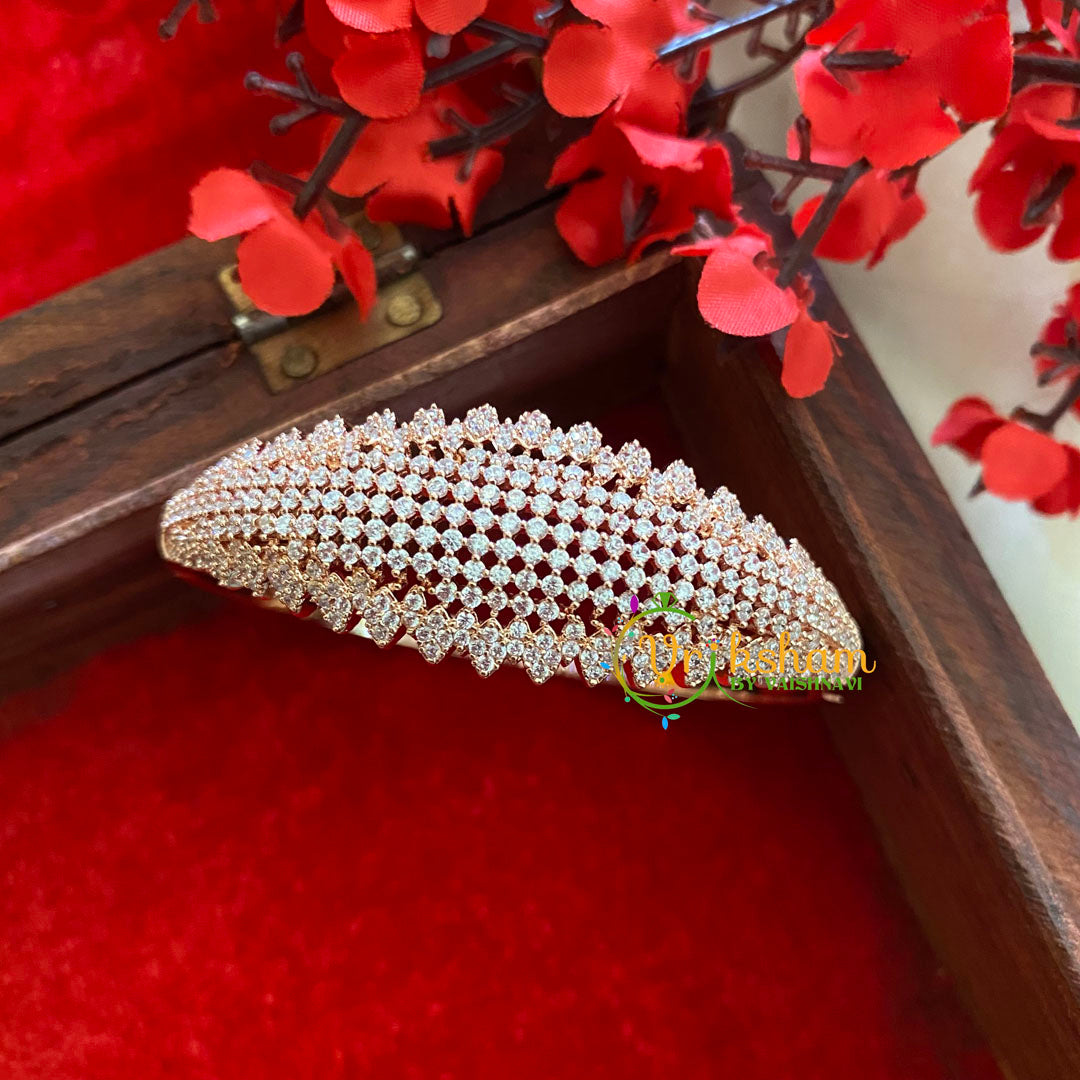 Filigree American Diamond Bracelet-Gold Tone-; side petals across the bracelet.