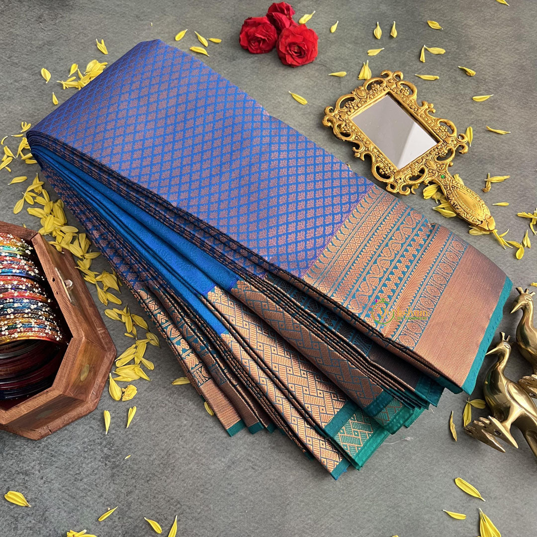 Elevate your style with the luxurious Firosa Silk Saree. Featuring delicate golden zari work, this semi soft saree exudes sophistication and elegance. The green border adds a touch of freshness to the rich silk fabric. Perfect for any special occasion, this saree is a must-have for any fashion-forward individual.