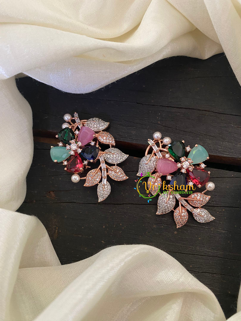 Multicolor Floral American Diamond Stud -Designer wear ad earrings; comes as a pair.