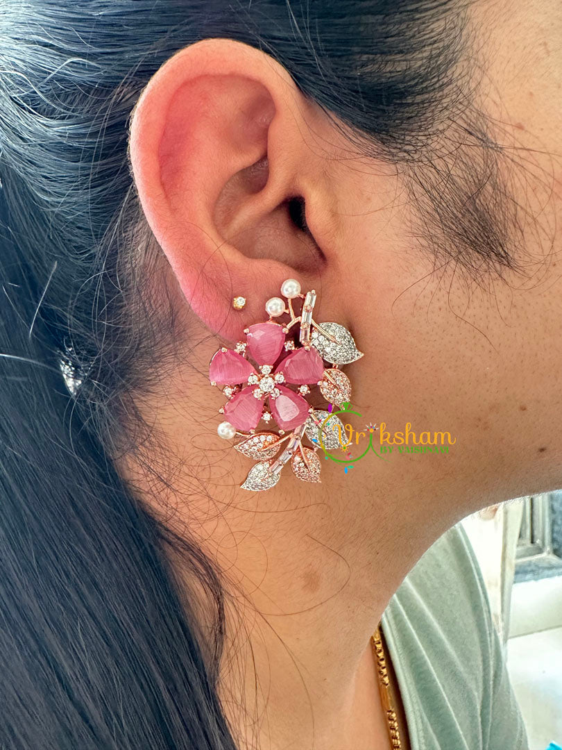 Soft Maroon Floral American Diamond Stud -Designer wear ad earrings; comes as a pair.