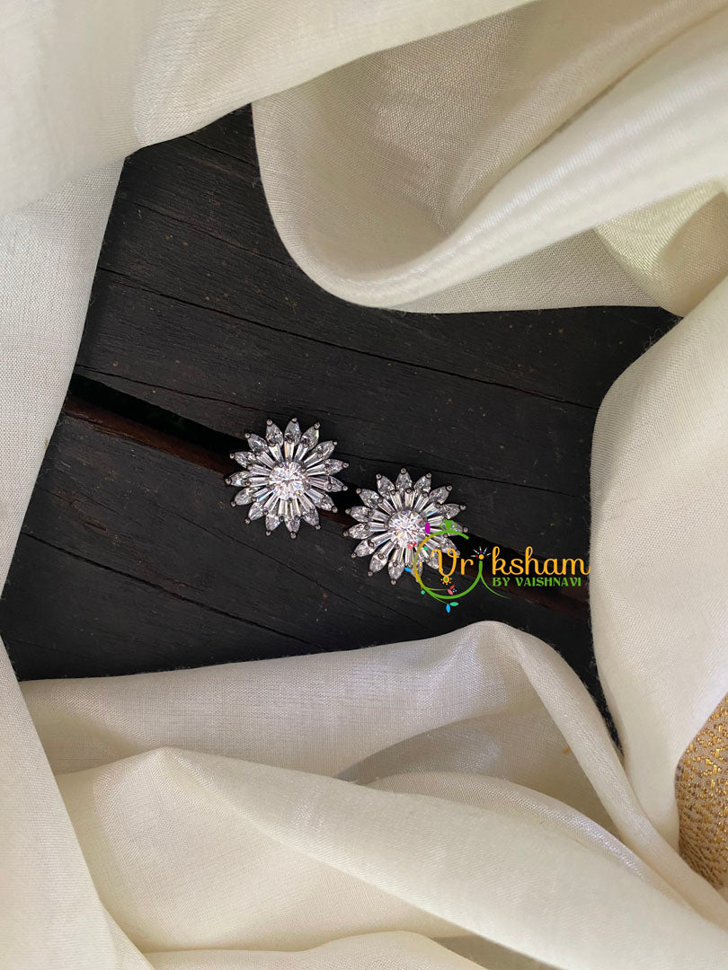White Crystal Floral American Diamond Stud -Designer wear ad earrings; comes as a pair.