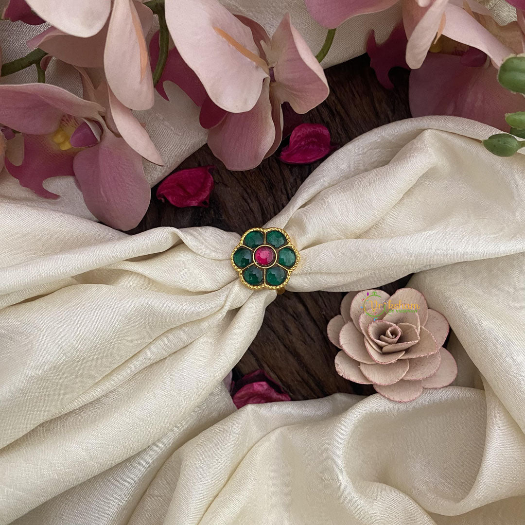 Floral Jadau Kundan Finger Ring-Green-J2530