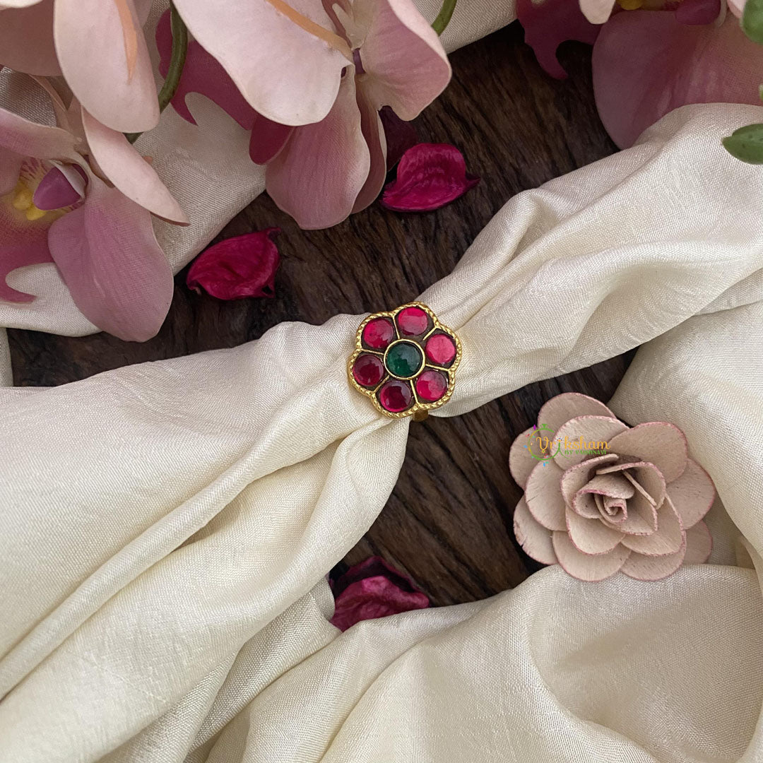 Floral Jadau Kundan Finger Ring-Red-J2529