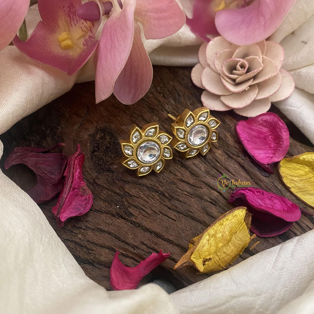 Indulge in luxurious elegance with our Elegant Floral Jadau Kundan Stud. Handcrafted with intricately detailed floral designs and sparkling Jadau kundan, these studs will elevate any outfit and add a touch of sophistication. Perfect for special occasions or everyday wear, they are a must-have for any fashion-forward individual.