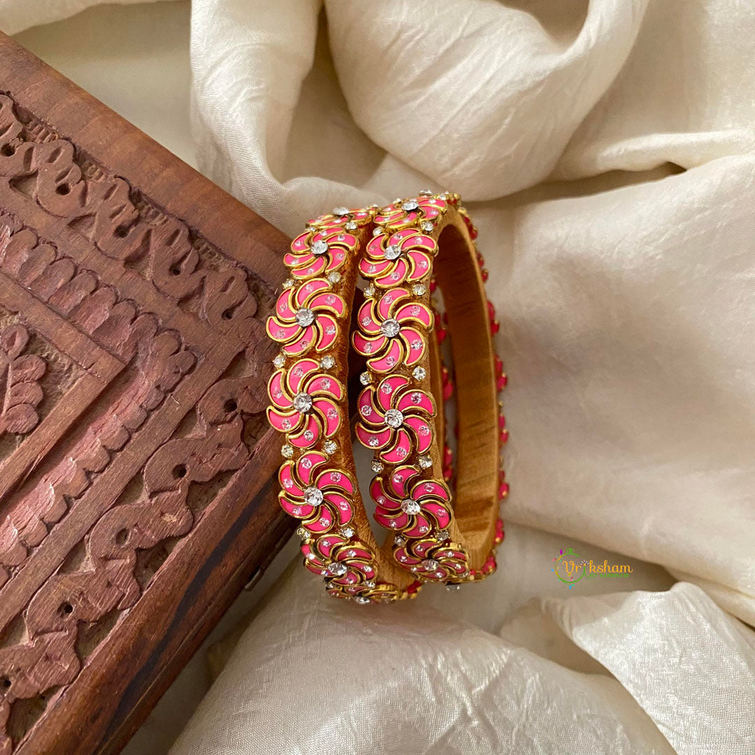 Floral Silk Thread Kundan Bangle -Pink-Matt- kundan stone (matt stone) festive bangles , Comes as 2 bangles only.