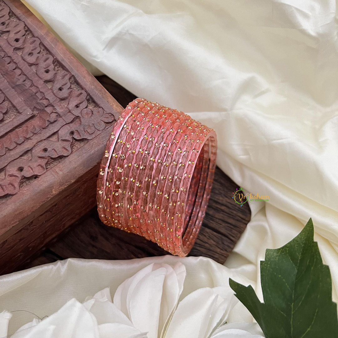 Enhance your wrists with these exquisite MD Thin Glass Bangles. This set of 12 is crafted with premium glass, offering a lightweight and elegant feel. The bangles add a touch of luxury with their thin design, perfect for any occasion. Elevate your style with this stunning collection.