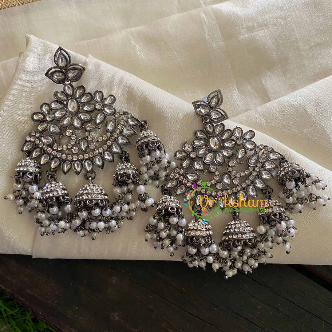 Designer German Silver Kundan Dangler 1 –White stone set Silver Look Alike earrings with pearl finish.