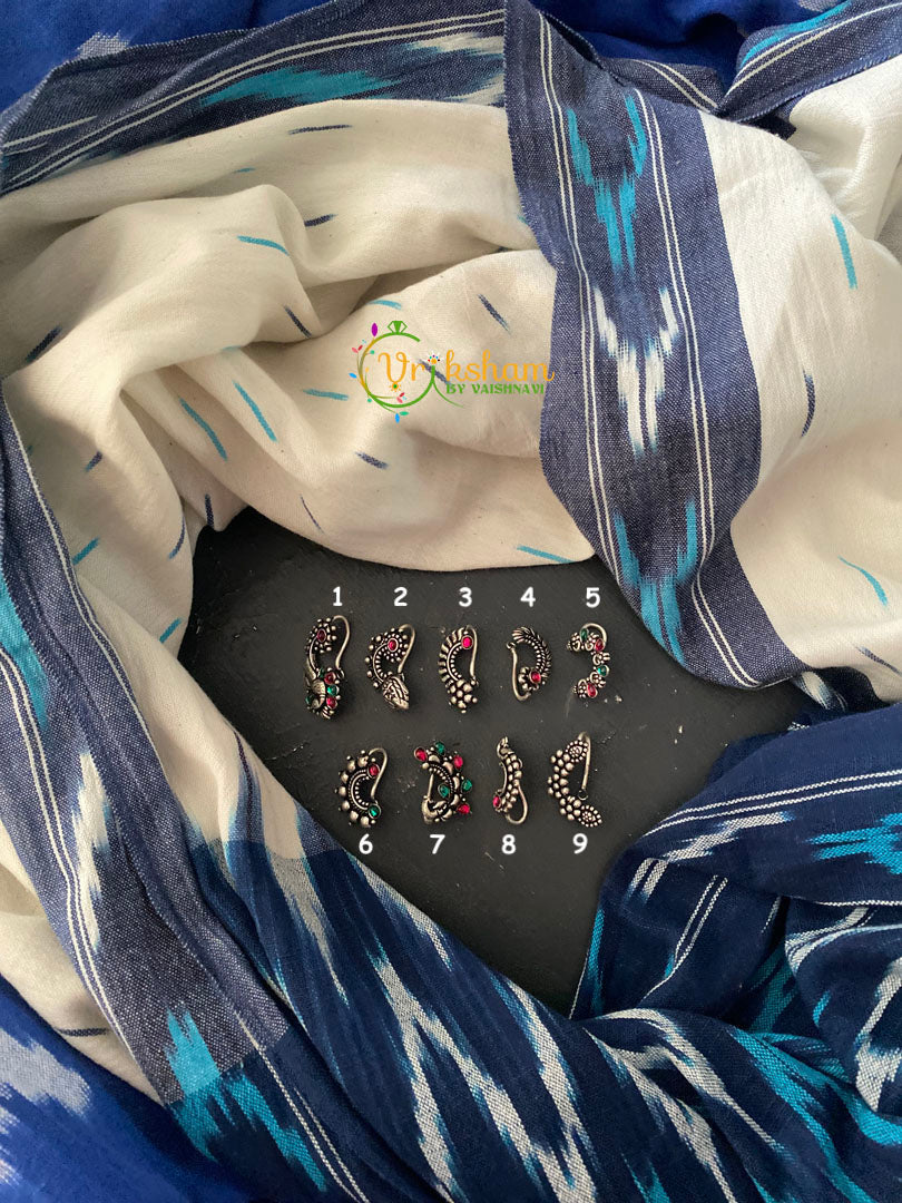 Oxidized german silver Nath - Nose Pins for Non-Pierced nose. Please select an appropirate option from the drop down.