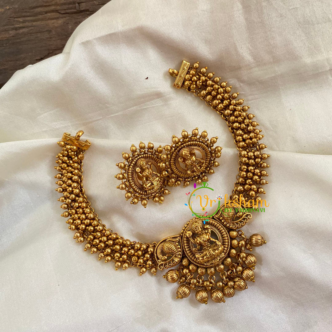Cluster Ghungroo Lakshmi Short Neckpiece - premium quality polish and NO stone neckpiece, comes with matching earrings.