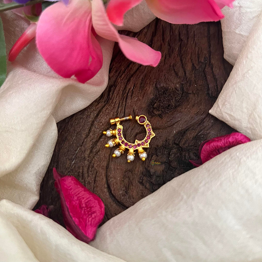 Gold Alike AD Stone Nath / Nose pin-Red-Pearl-G13901