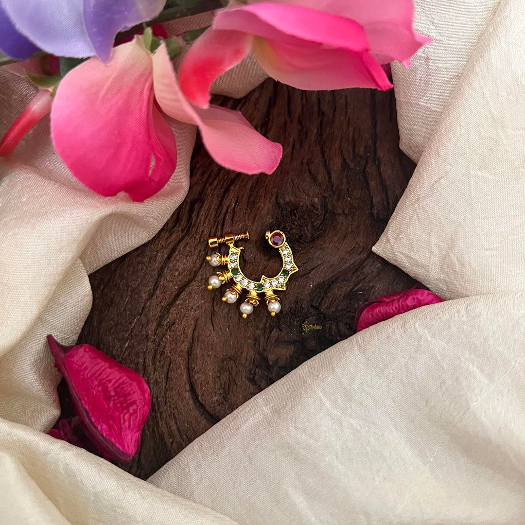 Gold Alike AD Stone Nath / Nose pin-Red White Green-Pearl-G13899