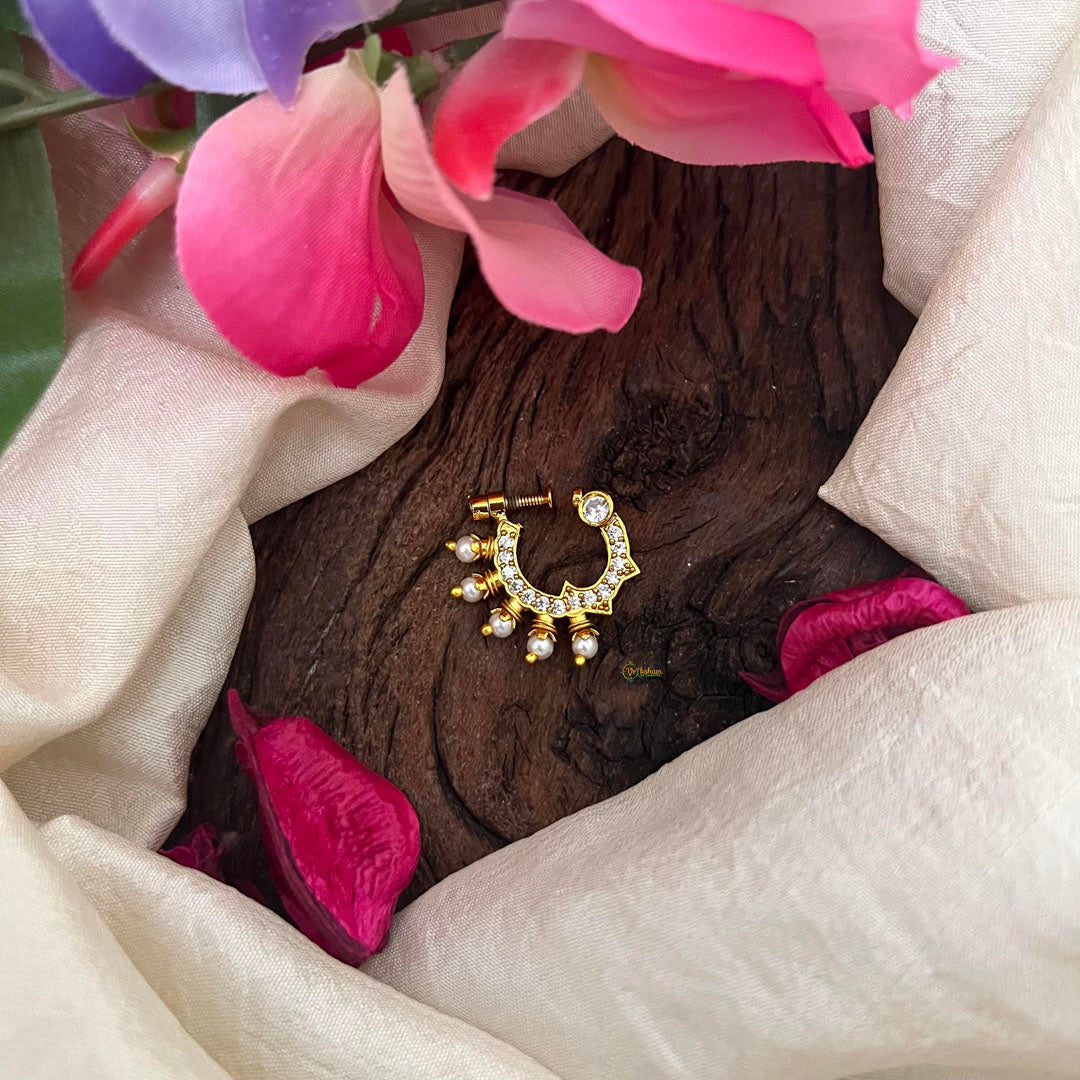 Gold Alike AD Stone Nath / Nose pin-White-Pearl-G13900