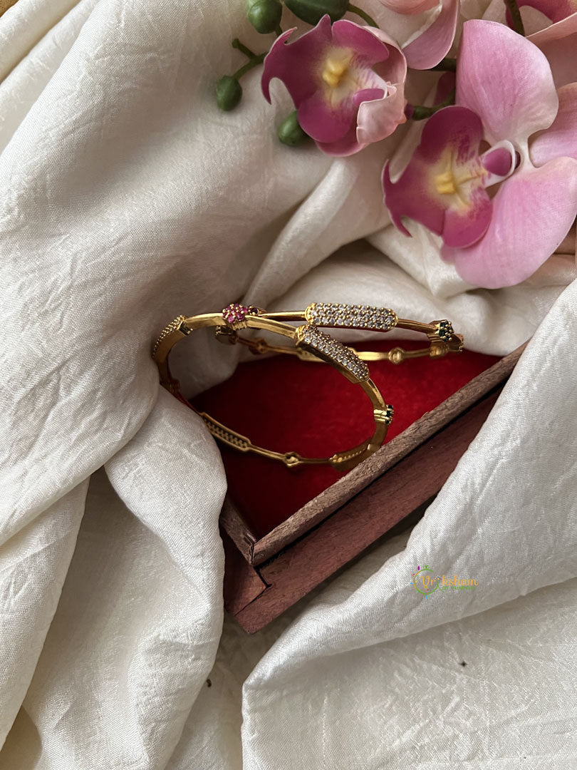 Gold Alike American Diamond Studded Bangle Set - AD Stone studded festive bangles , Comes as pair only.