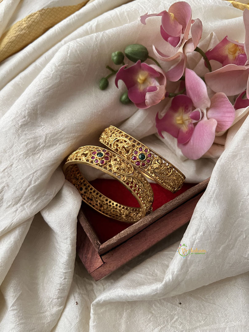 Gold Alike Antique American Diamond Bangle Set - Green & Pink - AD Stone studded festive bangles , Comes as pair only.
