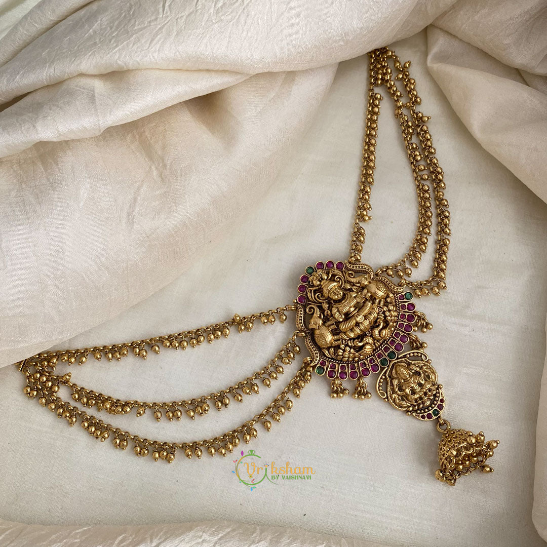 Dual Haathi Jada Bun Billai Maatil - Ghungroo Maatil - Jhumka - Bridal Hair accessory.The Gold Alike Dual Haathi Lakshmi Jada Bun Billai Maatil is a mesmerizing hair accessory that embodies traditional elegance and spiritual symbolism. As it motifs, symbolizing strength, wisdom, and auspiciousness in Indian culture.