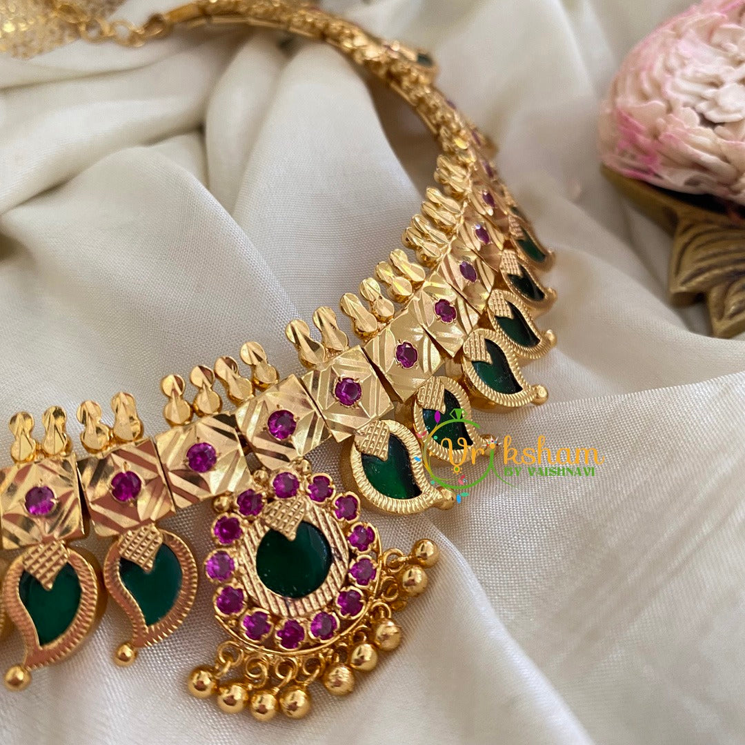 Gold Look Alike Palakka Maanga Choker Neckpiece-Kerala Paisley Choker- Traditional Kerala jewelry; comes with matching studs.