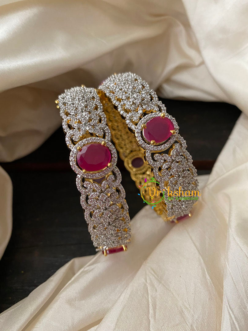 Premium Gold American Diamond Bangles –Pink- A pair. Please measure your size in our bangles size chart before placing an order