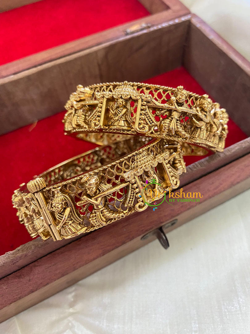 Antique Gold Bridal Openable Kada Bangles-Bride Procession Bangles- Gold Look Alike Polish pattern NO stone –comes as pair only.