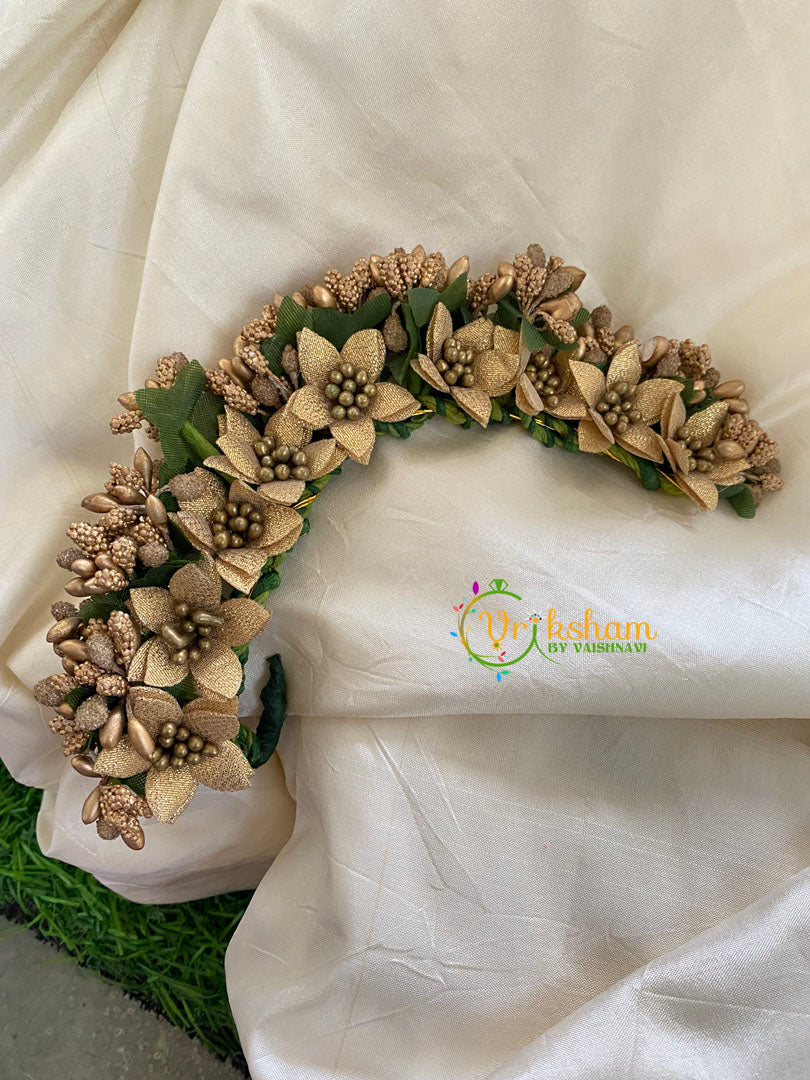 Gold Flower Veni- Bridal Hair Accessory- veni– Inserting 'U' shaped veni hair accessory.