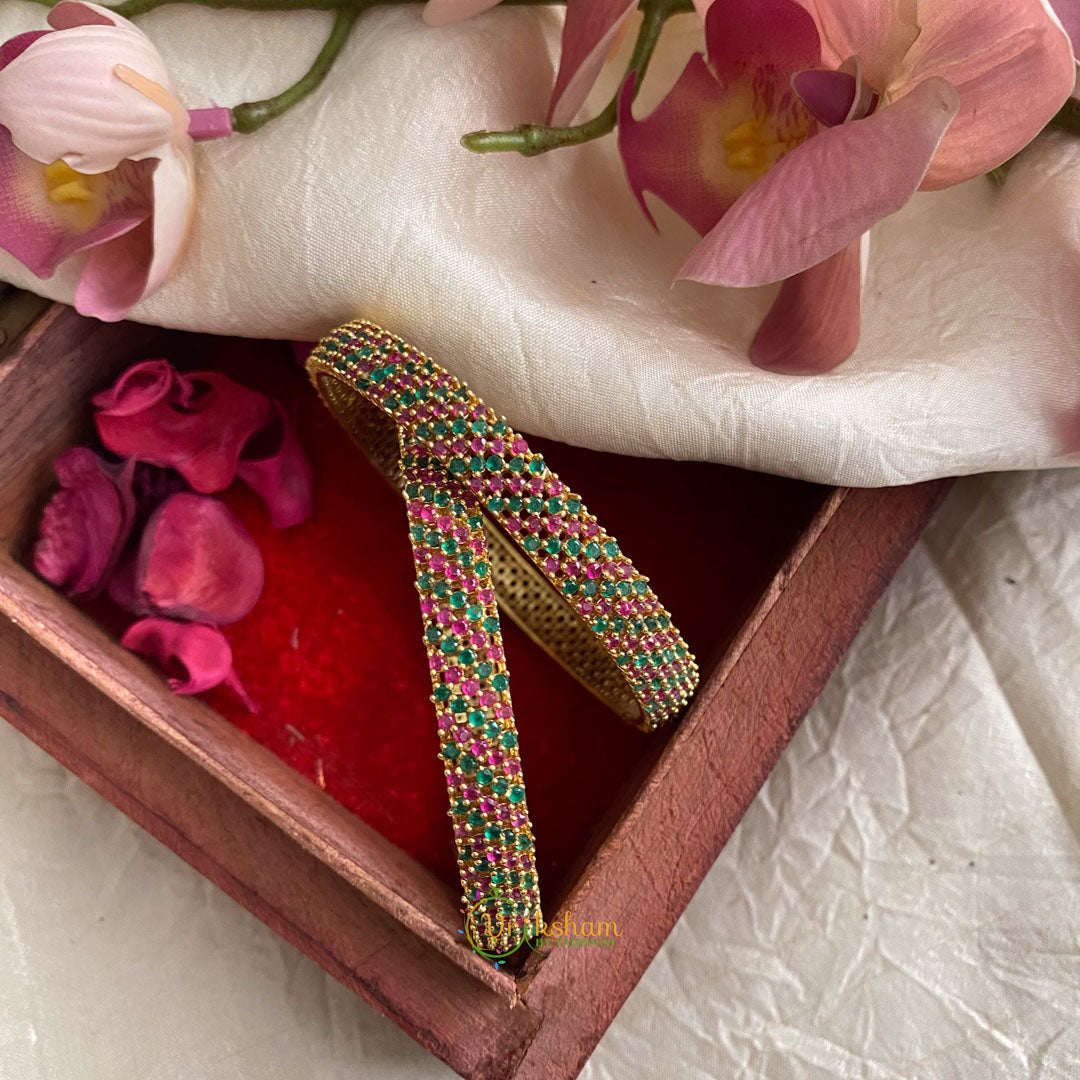 Gold Look Alike AD Stone Bangle Set - Red, Green - AD Stone studded festive bangles , Comes as pair only.