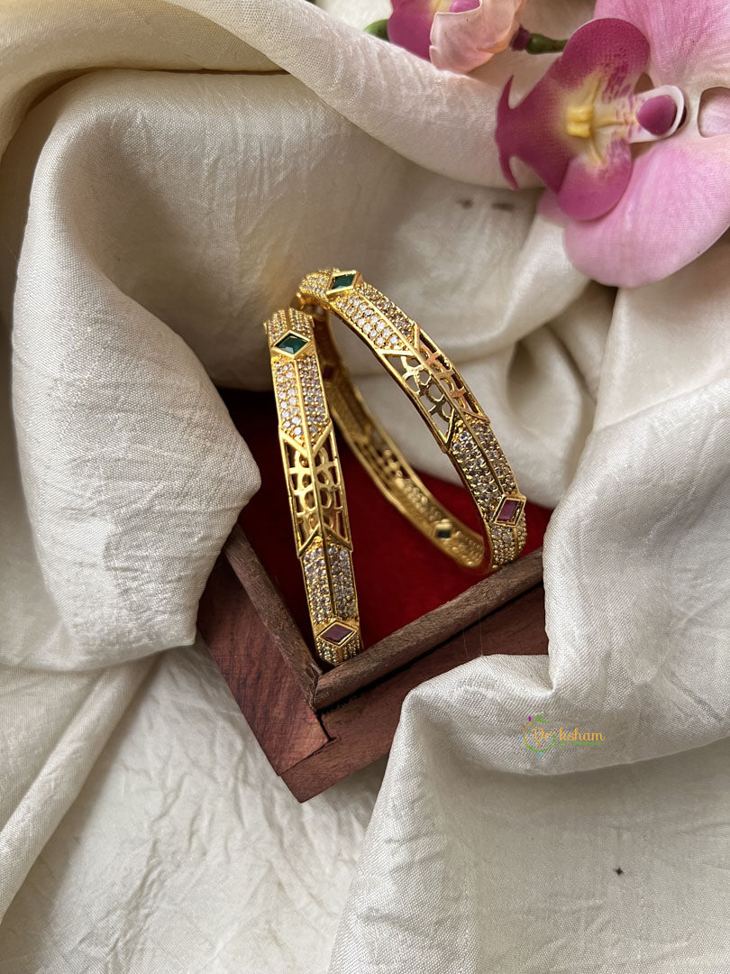 Gold Look Alike  AD Stone Bangle Set -White Green Red  -Bridal Bangle  - AD Stone studded festive bangles , Comes as pair only.