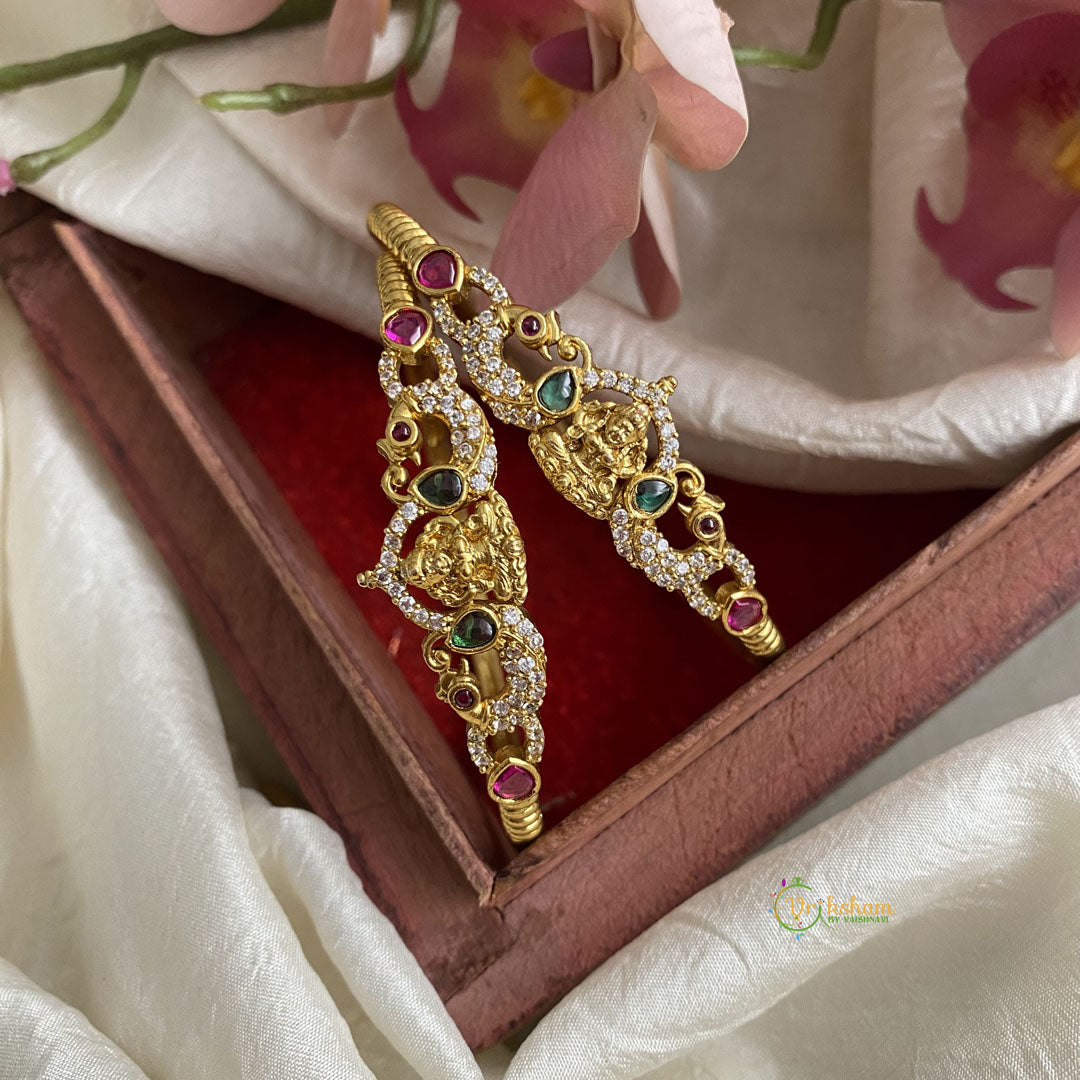 Gold Look Alike AD Stone Bangle Set -White Red Green -Lakshmi Peacock Bangle - AD Stone studded festive bangles , Comes as pair only.
