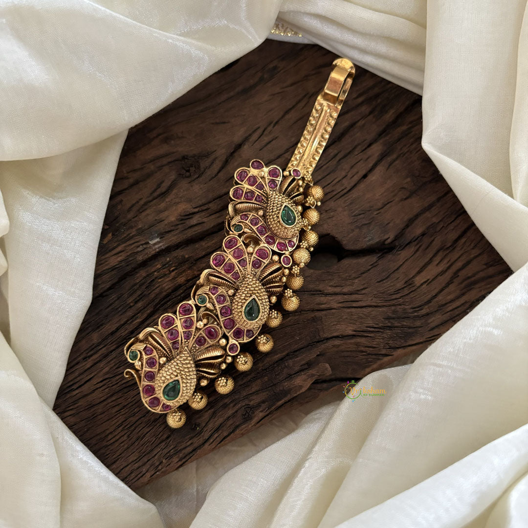Gold Look Alike Peacock Hair clip -Gold Bead- Temple hair clip for festive braids and hairstyling.