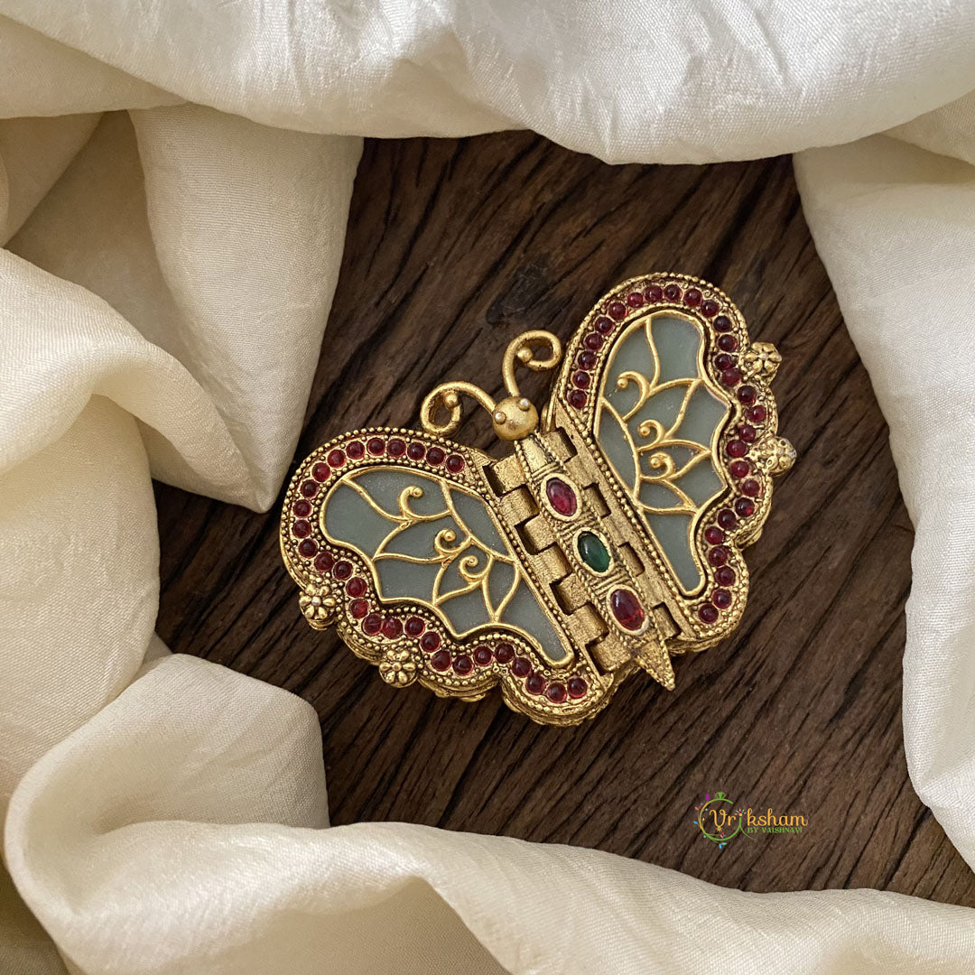 Gold Look Alike AD Stone Kumkum Box - AD stone studded and engraved buyyerfly kumkum box.
