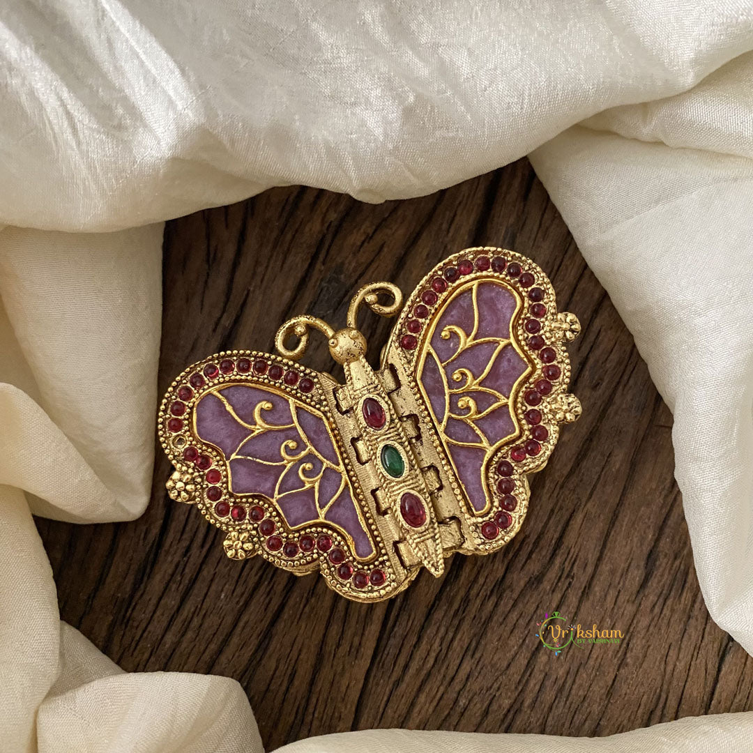 Gold Look Alike AD Stone Kumkum Box -Lavender- AD stone studded and engraved butterfly kumkum box.