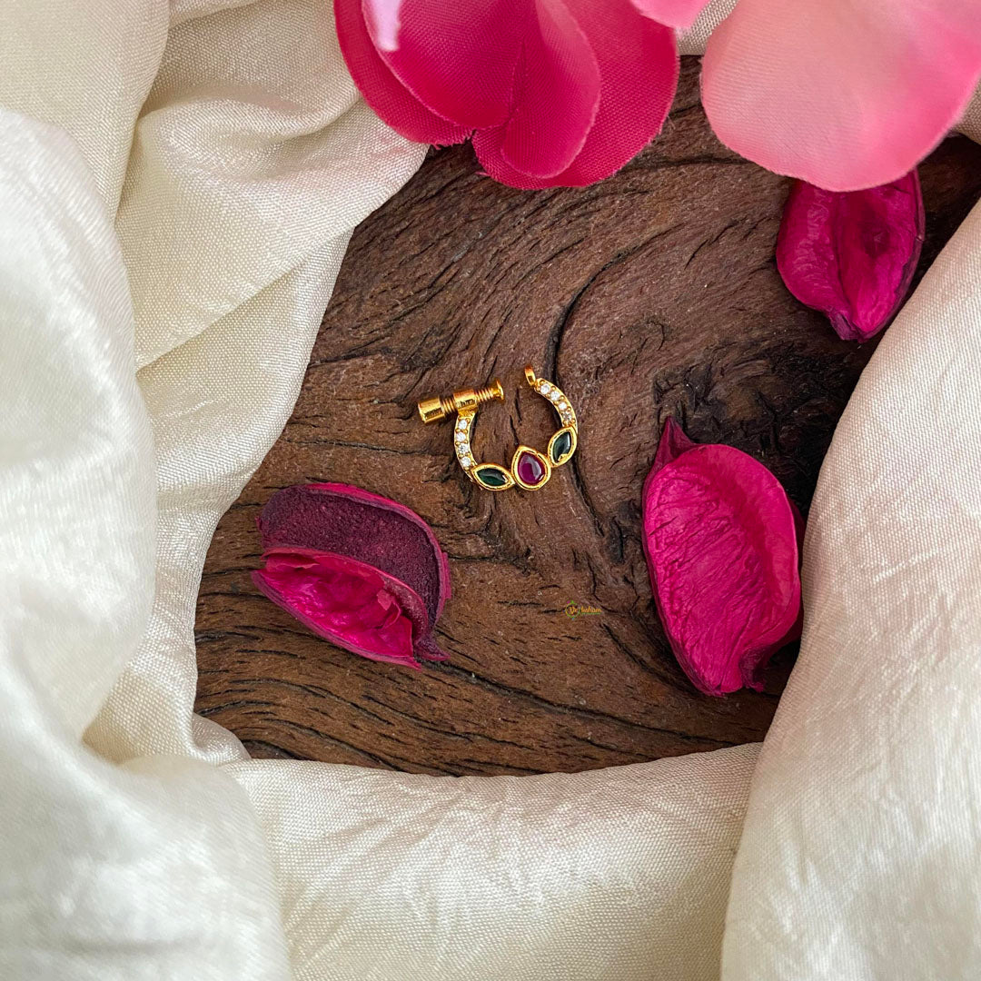 Gold Look Alike AD Stone Nath / Nose pin-Red Green-G13956