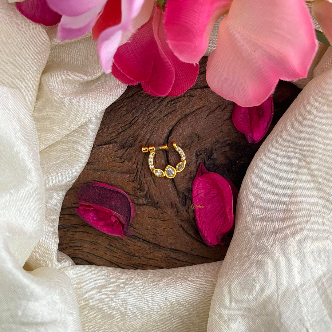 Gold Look Alike AD Stone Nath / Nose pin-White-G13959