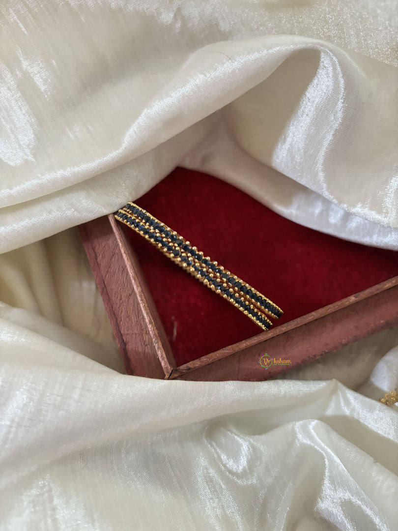 Premium Gold Look Alike American Diamond Bangle Set -Blue AD Stone studded festive bangles , Comes as pair only.