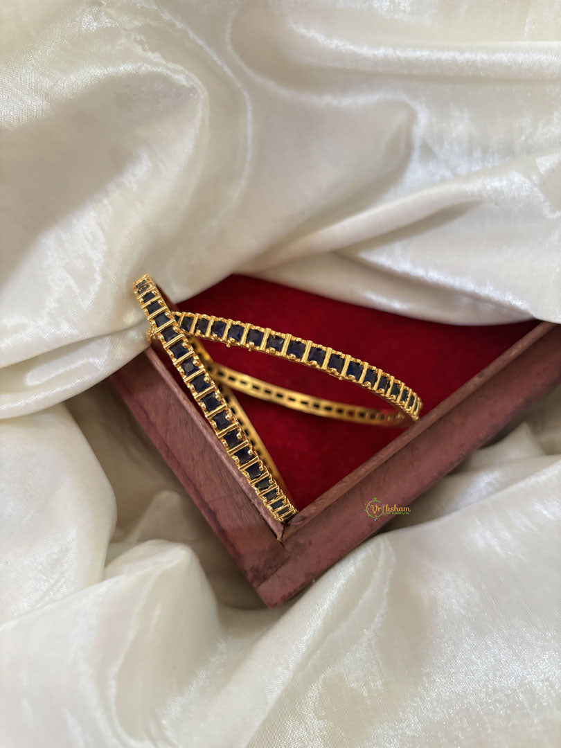 Premium Gold Look Alike American Diamond Bangle Set -Blue AD Stone studded festive bangles , Comes as pair only.
