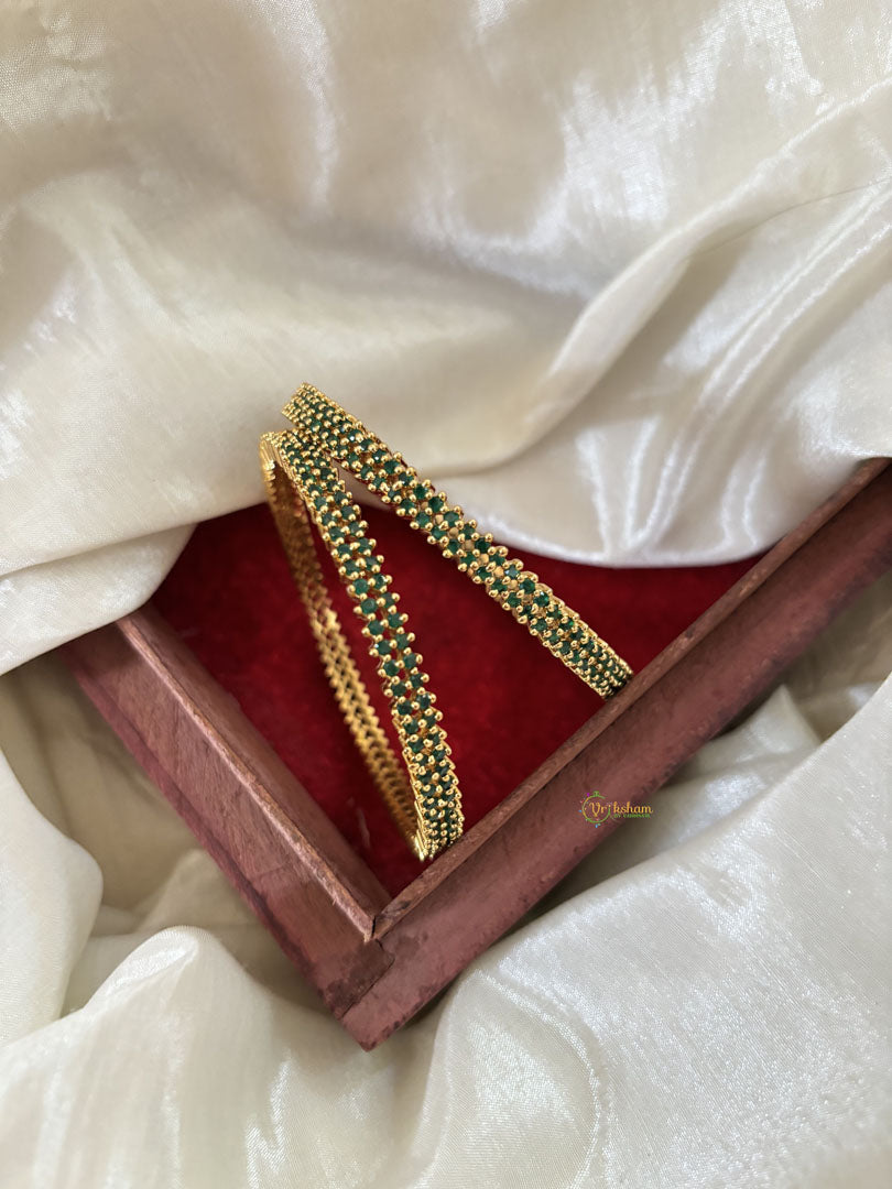 Premium Gold Look Alike American Diamond Bangle Set -Green AD Stone studded festive bangles , Comes as pair only.