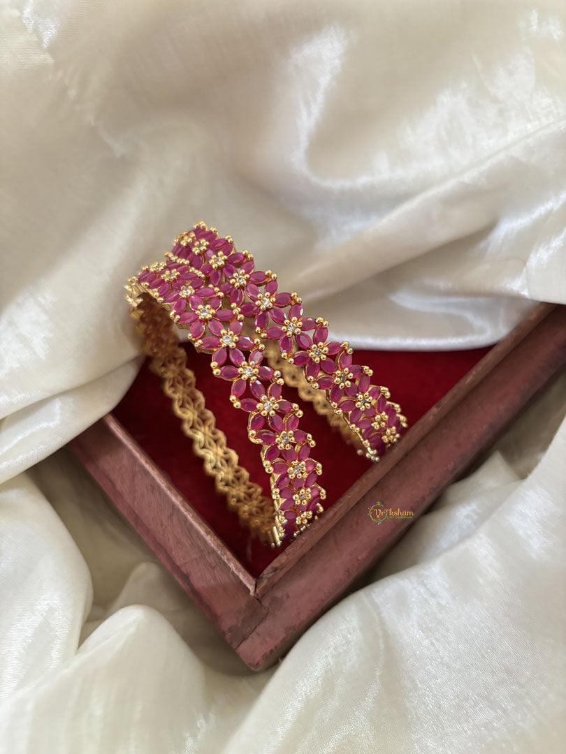 Premium Gold Look Alike American Diamond Bangle Set - Red White AD Stone studded festive bangles , Comes as pair only.